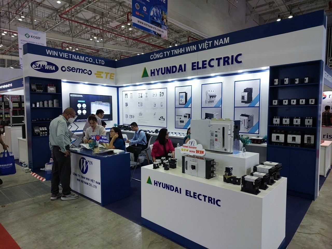 Công ty TNHH Win Việt Nam tham dự triển lãm với các sản phẩm chủ lực là Thiết bị đóng cắt Hyundai, tụ bù Samwha, chuyển nguồn ATS Osung, và bọc nối điện của TE (Mỹ)